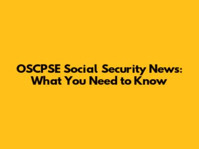 OSCPSE Social Security News: What You Need To Know