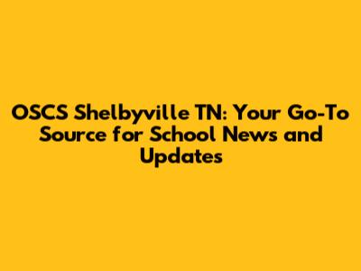 OSCS Shelbyville TN: Latest School News & Updates