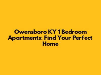 Owensboro KY 1 Bedroom Apartments: Find Your Perfect Home