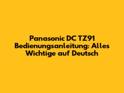 Panasonic DC TZ91 Bedienungsanleitung: Alles Wichtige Auf Deutsch