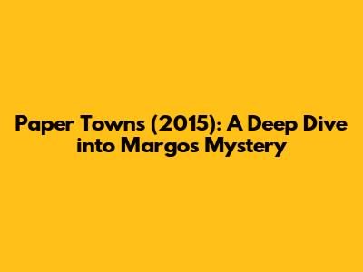 Alright, guys, let's talk about Paper Towns (2015), a film that really stuck with a lot of us back when it came out and honestly, it still sparks some interesting conversations today. Based on the fantastic novel by John Green, this movie isn't just another run-of-the-mill teen romance or a predictable coming-of-age story; it’s a beautifully crafted journey into the complexities of identity, perception, and the often-unseen depths of the people we think we know best. From the very beginning, Paper Towns (2015) pulls you into the world of Quentin "Q" Jacobsen, a seemingly ordinary high school senior who's secretly infatuated with his enigmatic and adventurous neighbor, Margo Roth Spiegelman. The film does a brilliant job of establishing this dynamic, painting a picture of Q's somewhat mundane existence contrasted sharply with Margo's larger-than-life persona, making her sudden disappearance all the more impactful. We're talking about a movie that dares to challenge our preconceived notions and asks us to look beyond the surface, something that's super relevant even now in our social media-driven world where everyone crafts their own perfect image. The central mystery of Margo's vanishing act serves as the primary engine for the plot, but as you delve deeper, you quickly realize that her absence is less about a literal search and more about Q's own journey of self-discovery and understanding of others. It’s a compelling narrative, mixing elements of mystery with poignant observations about growing up, friendship, and the often-disappointing reality of meeting your heroes. So, buckle up, because we're about to explore everything that makes Paper Towns (2015) a film worth revisiting, especially if you're into stories that make you think a little harder about the world around you and the unique individuals who inhabit it.