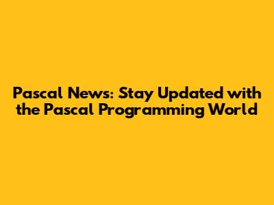 Unveiling the Latest Pascal Updates and News