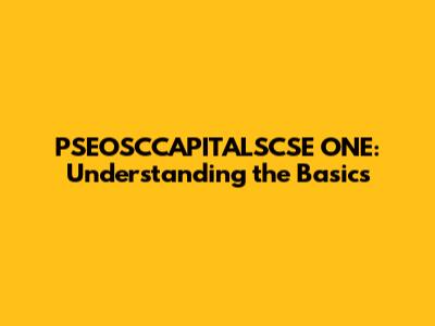 PSEOSCCAPITALSCSE ONE: Understanding The Basics