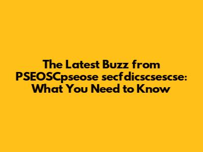 The Latest Buzz from PSEOSCpseose secfdicscsescse: What You Need to Know
