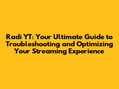 Optimizing Your Radi YT Setup for Peak Performance