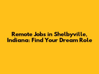 Remote Jobs In Shelbyville, Indiana: Find Your Dream Role