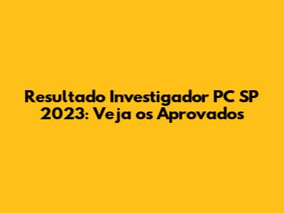 Resultado Investigador PC SP 2023: Veja Os Aprovados