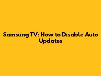 Samsung TV: How To Disable Auto Updates