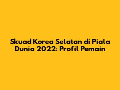 Skuad Korea Selatan Di Piala Dunia 2022: Profil Pemain
