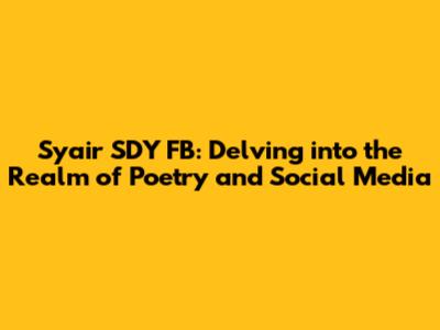 Syair SDY FB: Exploring The World Of Poetry And Social Media