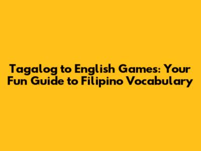 Tagalog To English Games: Learn & Play!