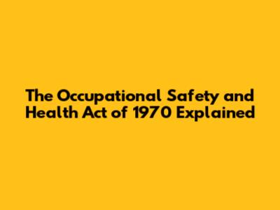 The Occupational Safety And Health Act Of 1970 Explained