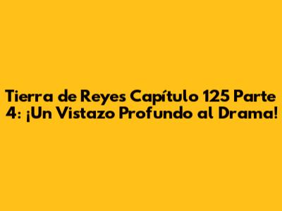 Hey guys! ¿Listos para sumergirnos en el apasionante mundo de "Tierra de Reyes"? En este artículo, vamos a desmenuzar el capítulo 125, parte 4, analizando cada detalle, cada emoción y cada giro argumental que nos mantuvo al borde del asiento. Prepárense, porque esto es más que un simple resumen; es una inmersión profunda en las intrigas, el amor y la traición que definen esta telenovela. Vamos a explorar los momentos clave, los personajes que brillan con luz propia y, por supuesto, los secretos que se revelan en este episodio crucial. ¿Están preparados para revivir el drama? ¡Pues, manos a la obra!