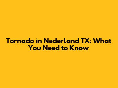 Tornado In Nederland TX: What You Need To Know