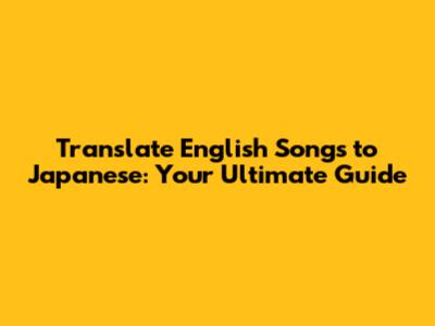 Translate English Songs To Japanese: Your Ultimate Guide