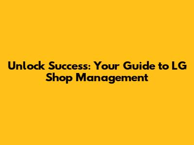 Unlock Success: Your Guide To LG Shop Management