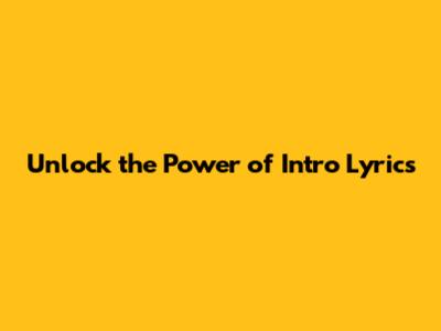 Unlock The Power Of Intro Lyrics