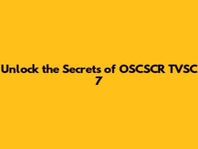 Why is OSCSCR TVSC 7 a Game-Changer?