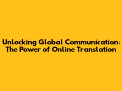 Unlocking Global Communication: The Power Of Online Translation