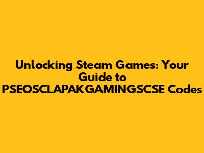 Unlocking Steam Games: Your Guide To PSEOSCLAPAKGAMINGSCSE Codes