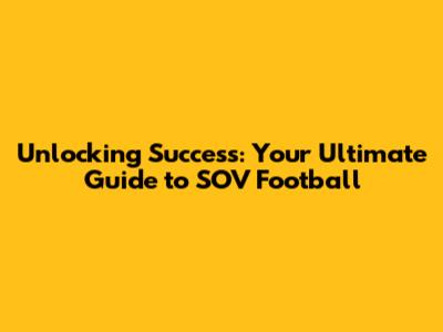 Unlocking Success: Your Ultimate Guide To SOV Football
