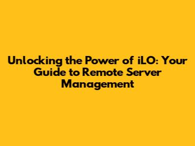 Unlocking The Power Of ILO: Your Guide To Remote Server Management