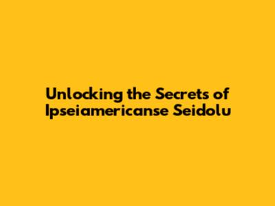 Unlocking The Secrets Of Ipseiamericanse Seidolu &39;sse