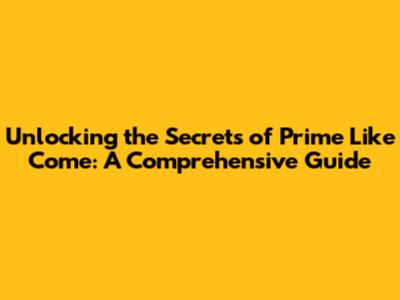 Unlocking The Secrets Of Prime Like Come: A Comprehensive Guide
