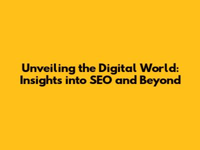 Unveiling The Digital World: Insights Into SEO And Beyond