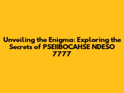 Unveiling The Enigma: Exploring The Secrets Of PSEIIBOCAHSE NDESO 7777