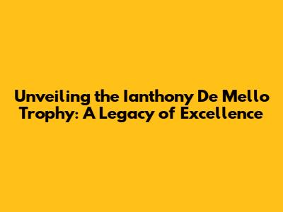 Unveiling The Ianthony De Mello Trophy: A Legacy Of Excellence