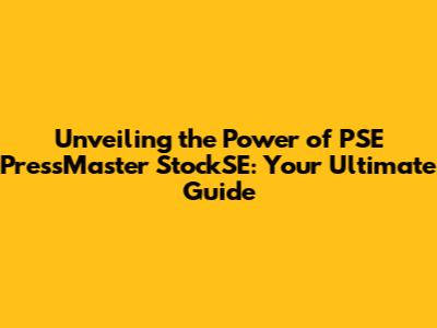 Unveiling The Power Of PSE PressMaster StockSE: Your Ultimate Guide