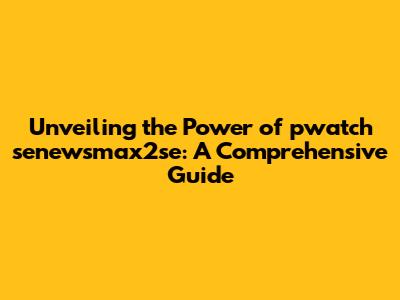 Unveiling The Power Of Pwatch Senewsmax2se: A Comprehensive Guide