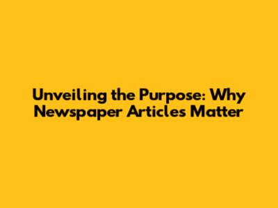 Unveiling The Purpose: Why Newspaper Articles Matter