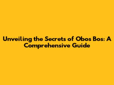 Unveiling The Secrets Of Obos Bos: A Comprehensive Guide