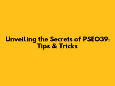 Unveiling The Secrets Of PSEO39: Tips & Tricks