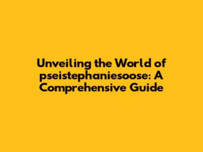 Unveiling The World Of Pseistephaniesoose: A Comprehensive Guide