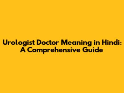Urologist Doctor Meaning In Hindi: A Comprehensive Guide