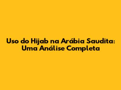Uso Do Hijab Na Arábia Saudita: Uma Análise Completa