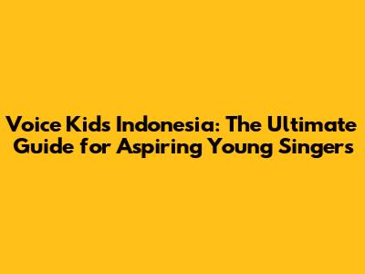 Voice Kids Indonesia: The Ultimate Guide For Aspiring Young Singers