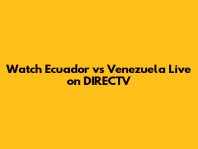 Watch Ecuador Vs Venezuela On DIRECTV