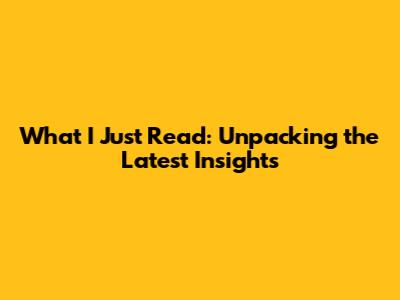 What I Just Read: Insights And Takeaways