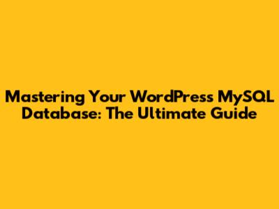 WordPress MySQL Database: A Comprehensive Guide