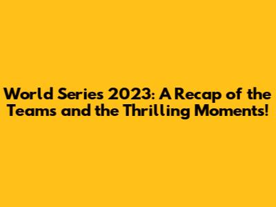 World Series 2023: Teams & Highlights!