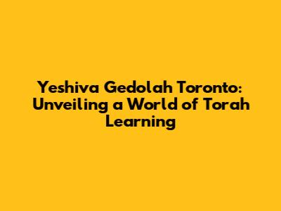 Yeshiva Gedolah Toronto: A Comprehensive Guide